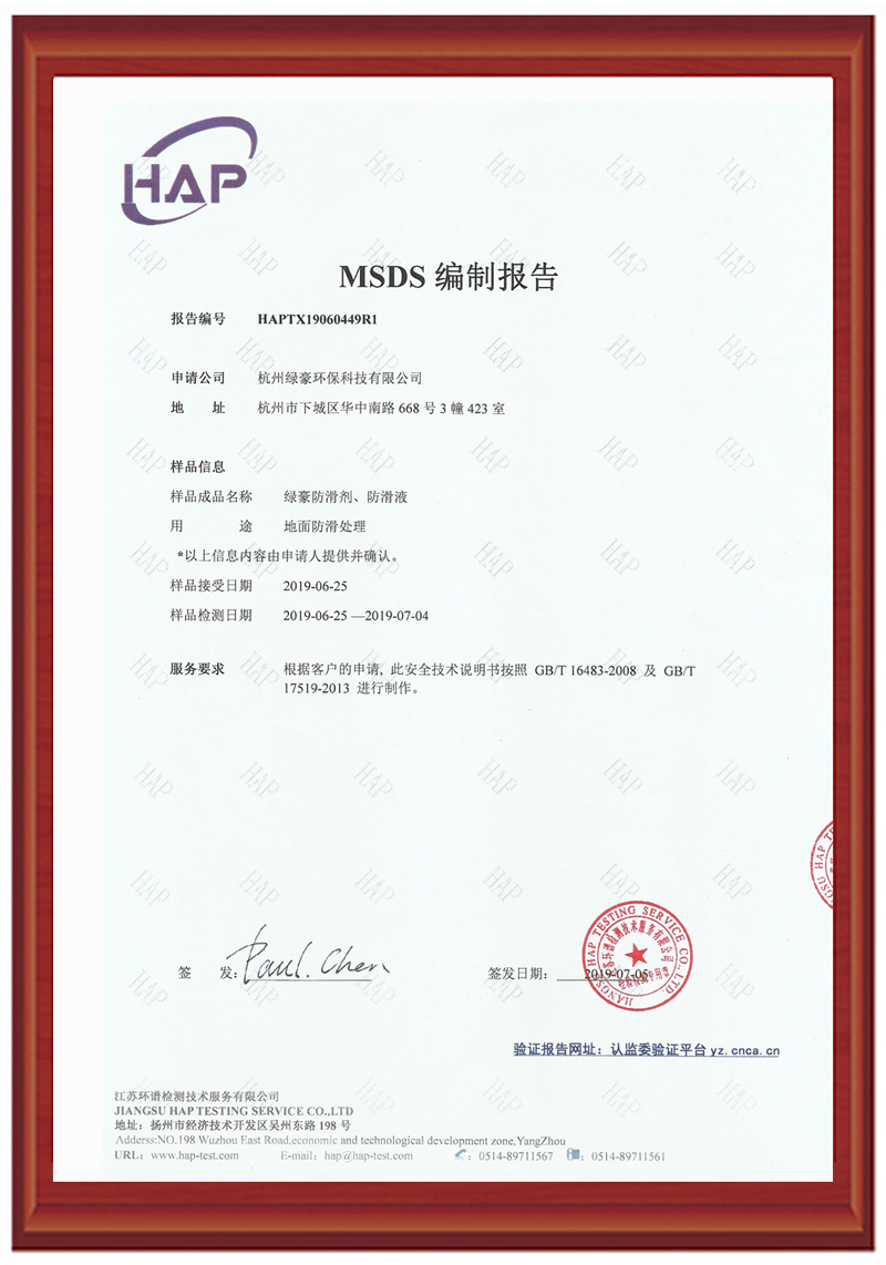 綠豪防滑綠色環(huán)保無毒無害,針對現(xiàn)有地面進行處理,隱形防滑,處理后表面不增加涂層,打掃衛(wèi)生無影響,長久有效,遇水遇油都防滑、、、